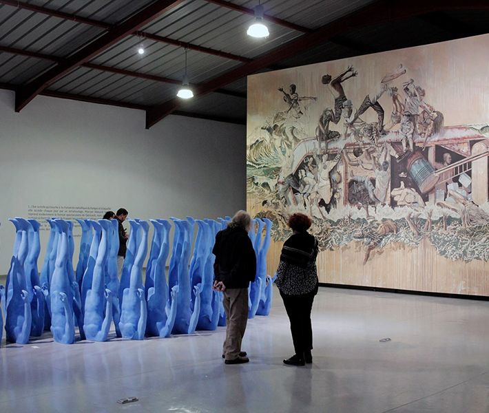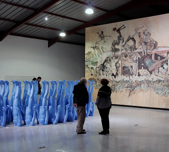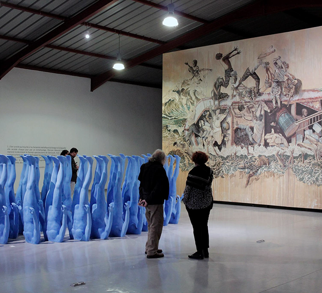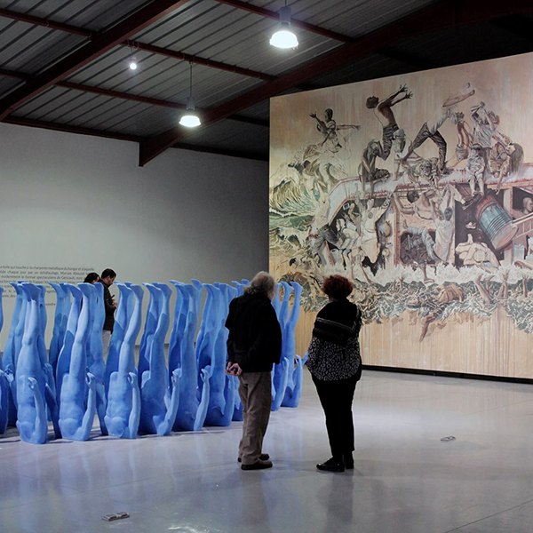 "Peut-être les passagers rêvent-t-ils lors de la traversée. Peut- être ne savent-ils pas encore la profondeur d’une mer, n’en distinguent que l’étendue lisse, surface plane et sans repères où ils plaquent leurs mirages et leurs rêves, immense, bleue et méditative. Et donc, peut-être rêve-t-on de ce rivage où les aspirations pourraient enfin bourgeonner. L’embarcation glisse sur une mer d’huile, traque son cap, son sillon vague doucement derrière elle. La traversée suit son fil conducteur. Brusquement, nous quittons le temps poussif de la traversée pour entrer dans celui du naufrage."